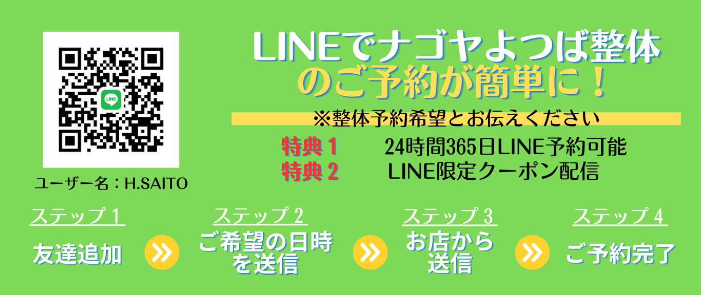 ☆お問い合わせはナゴヤよつば整体HPのお問い合わせフォームからもお待ちしております。